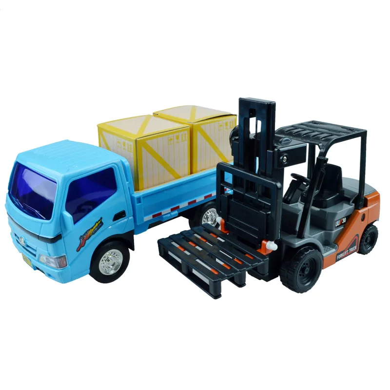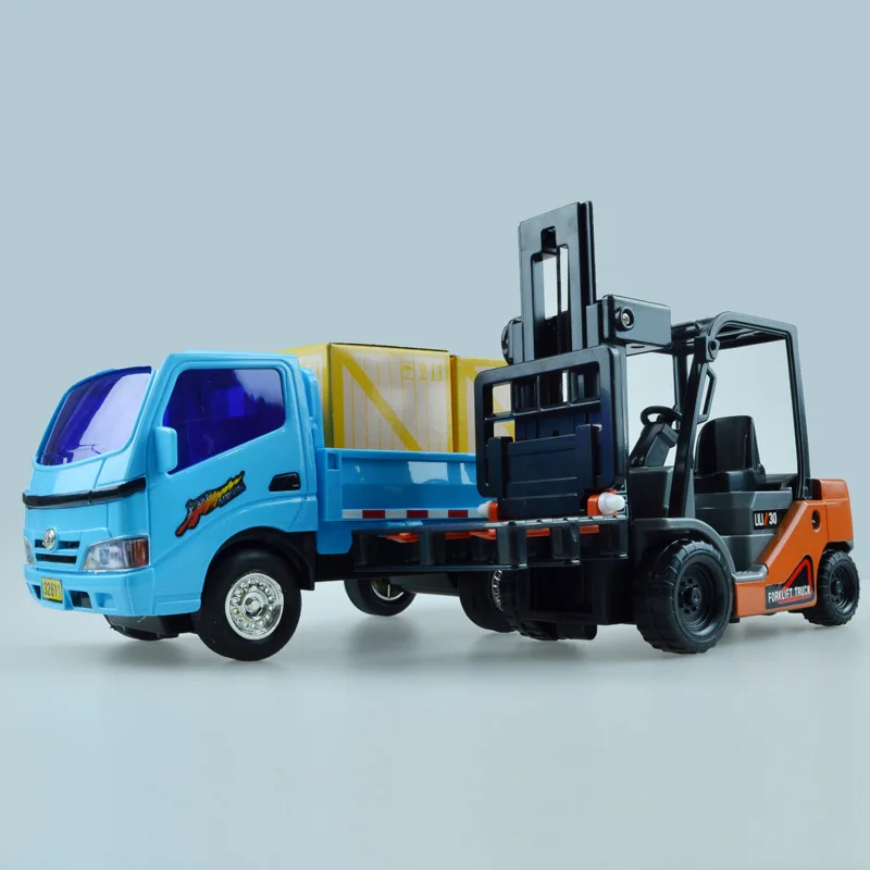 1set boys toy Engineering vehicle flatbed truck+ forklift car model toys plastic Diecast Metal Modl